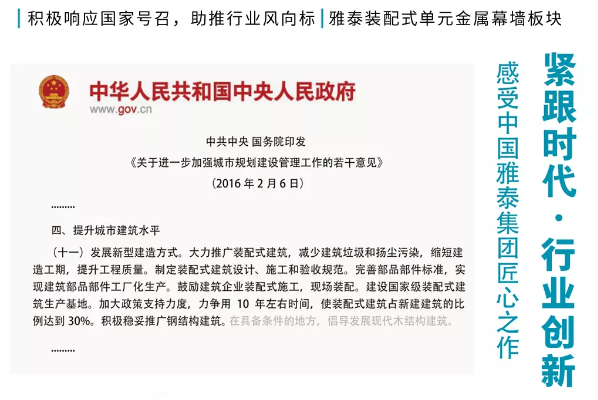作為雅泰裝配式單元金屬幕墻筑造史上的又一里程碑事件,該項(xiàng)目著重強(qiáng)調(diào)了雅泰在金屬?gòu)?fù)合材料領(lǐng)域的開(kāi)放屬性,以及對(duì)其生產(chǎn)工藝水平不斷提升、自我超越的承諾。此次項(xiàng)目的順利落成,不僅代表著雅泰在裝配式單元金屬幕墻板塊領(lǐng)域的又一進(jìn)步,更見(jiàn)證了中外以經(jīng)濟(jì)全球化為核心,以建筑文化相融為紐帶,不斷深化的國(guó)際友誼。