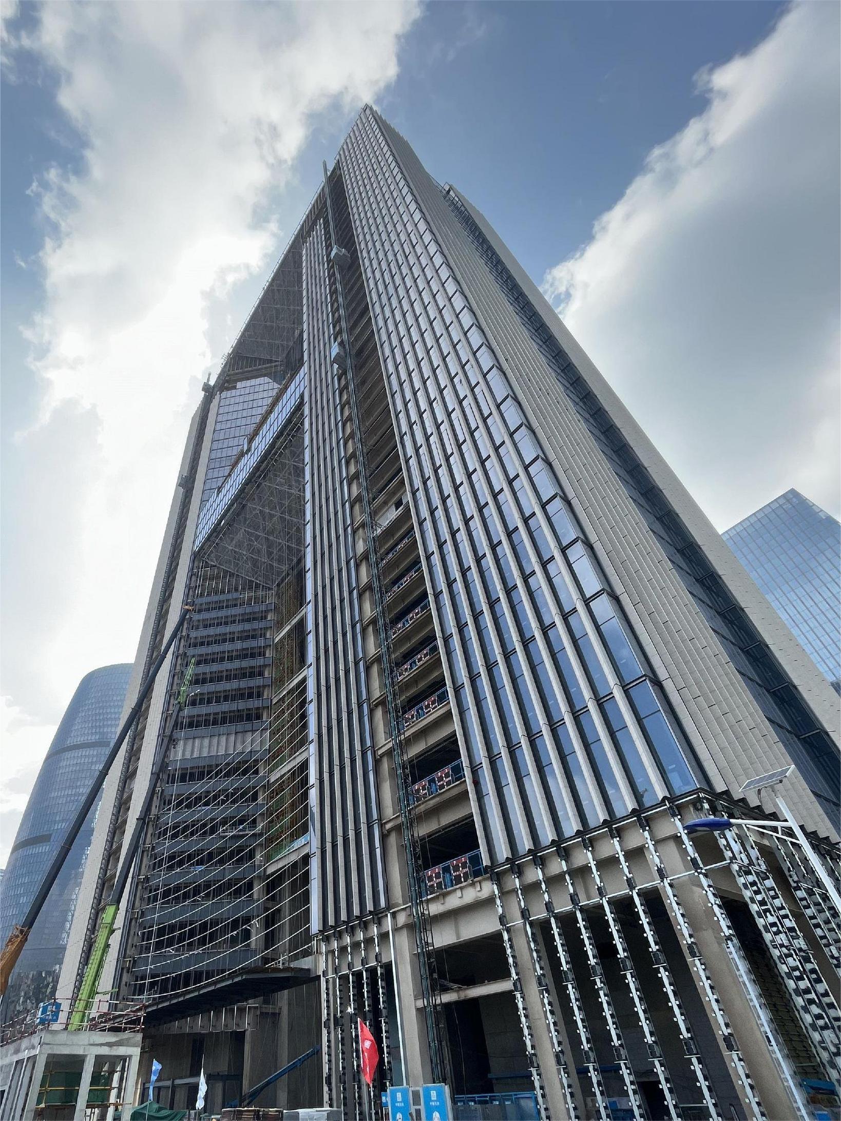 該工程由中國建筑第八工程局有限公司承建,雅泰實業(yè)集團承接外墻裝飾部分材料供材約40000平方米。項目體量大、工期短,目前工程全面進入外墻裝飾階段,集團全力保障該項目的供材,預計10月完成外幕墻全部封閉。封閉后可以完整地看到大廈上部呈現為一個雄偉的大門,彰顯國家對信息建設的信心和決心,“信息之門”由此而來。