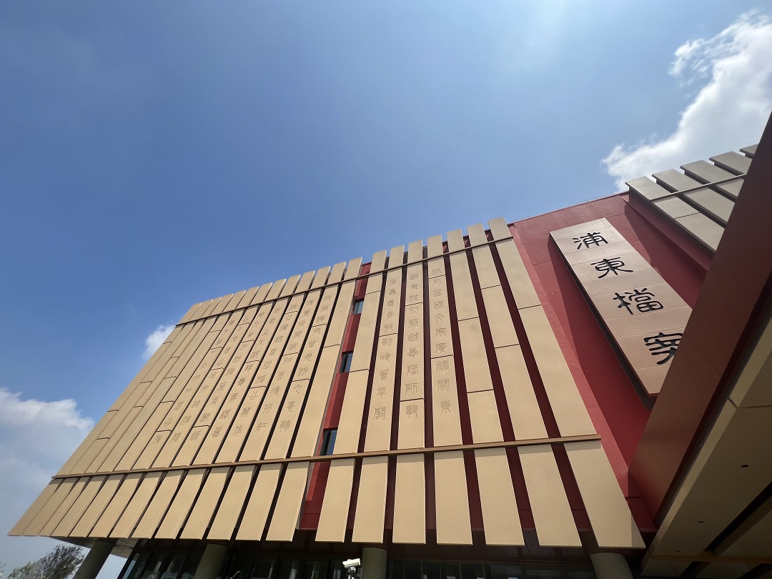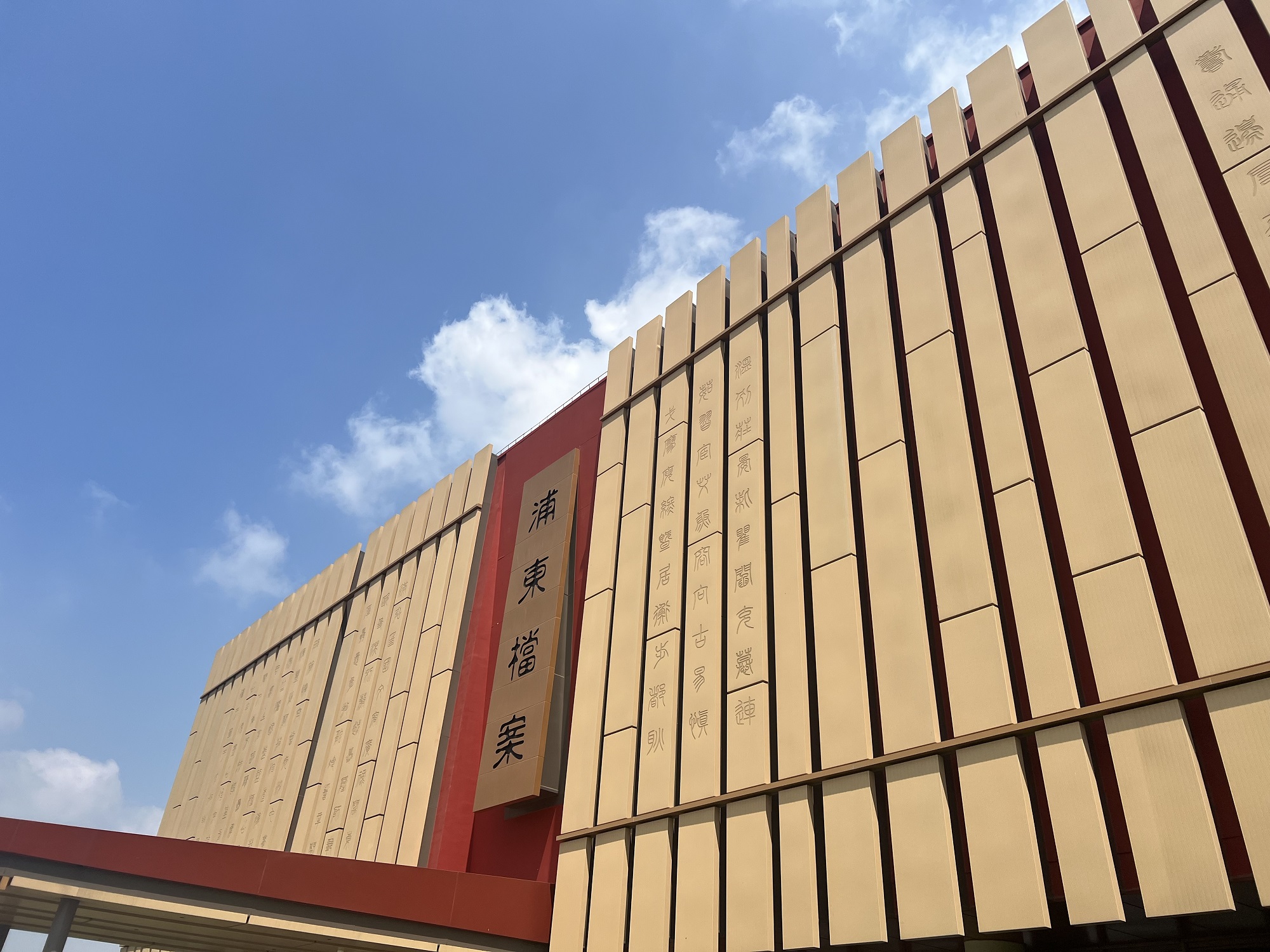 當走近位于百潤路100號的上海浦東新區(qū)檔案館時,瞬間被這座充滿中國文化底蘊,用一方方紅色印章與一片片原色竹簡,巧妙搭配的建筑深深吸引。