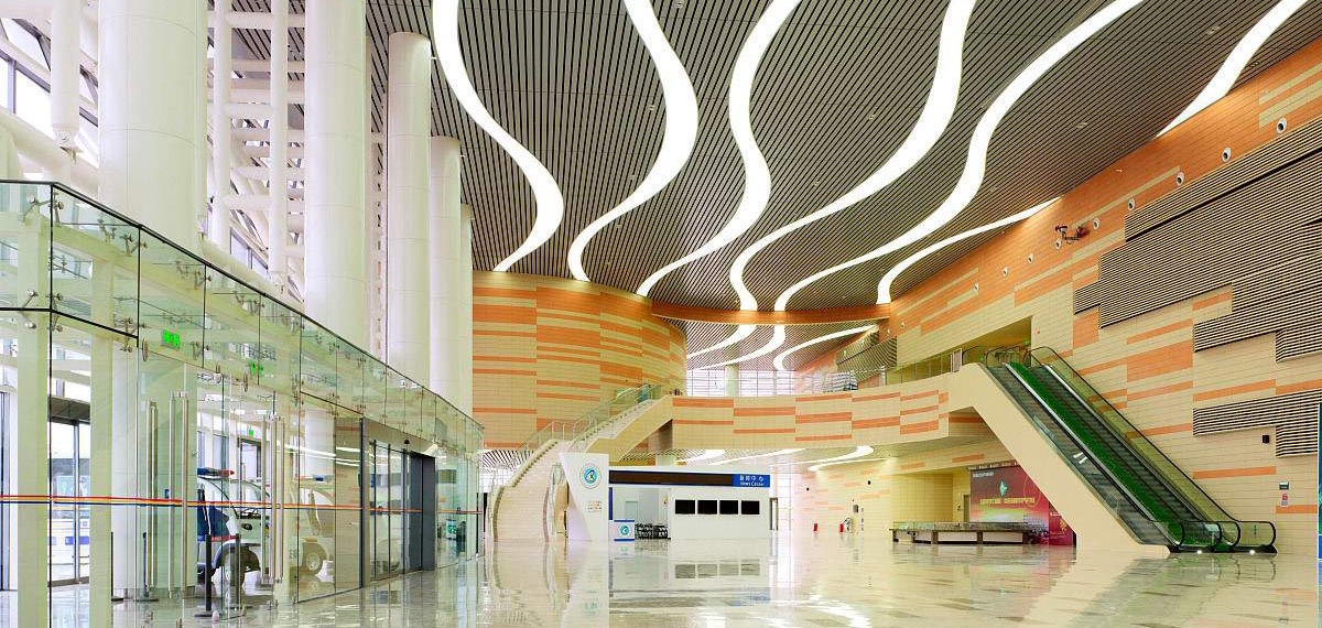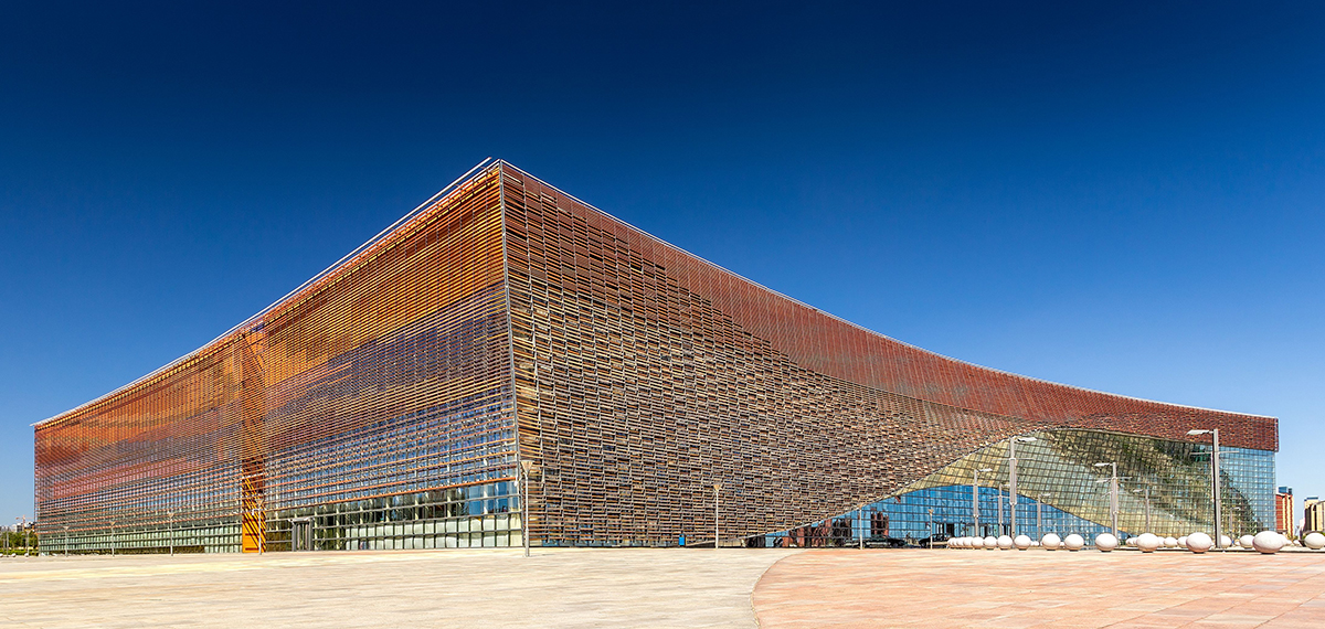 新疆克拉瑪依會(huì)展中心,1期(20,000平方米)和2期(40,000平方米)。1期會(huì)展廳可以被分隔為兩個(gè)各5,5000平方米的廳,公共大堂和廣場(chǎng)是室內(nèi)的,以響應(yīng)克拉瑪依寒冬氣候和盛行風(fēng)。1期的主大堂特意被做成超大尺寸以允許舉辦額外的超大展覽或?yàn)榱藵M足多個(gè)展覽的登記工作;1期大堂也通過(guò)人行天橋與2期連接。一個(gè)能夠容納超過(guò)300人的會(huì)議區(qū)域被置于大堂的上一層。